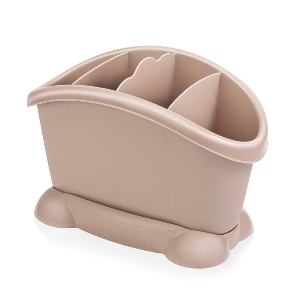 Подставка для столовых приборов Elfplast – прекрасное решение по организации хранения для кухни. Четыре секции позволяют хранить столовые приборы по отдельности. Разделитель достаточно высокий и устойчивый. Вода стекает в специальный поддон внизу органайзера. При необходимости его можно легко отсоединить, слить воду и помыть.