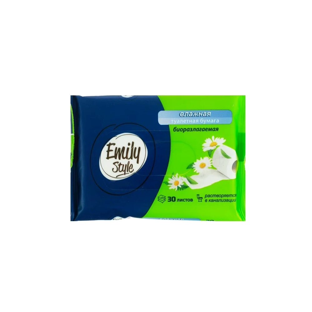 Влажная туалетная бумага Emily Style, растворяющаяся 30шт Описание: влажная туалетная бумага Emily Style, растворяющаяся 30шт. Влажную туалетную бумагу Emily Style можно использовать как самостоятельное средство гигиены, так и в дополнении к обычной туалетной бумаге. Она изготовлена из мягкого, нежного материала аэрлейд, не содержит спирта, поддерживает нейтральный Ph. Полностью растворяется в канализации. Экстракт ромашки очищает и защищает кожу от инфекций и вредных бактерий. Экстракт алое повышает бактериостатические свойства кожи.