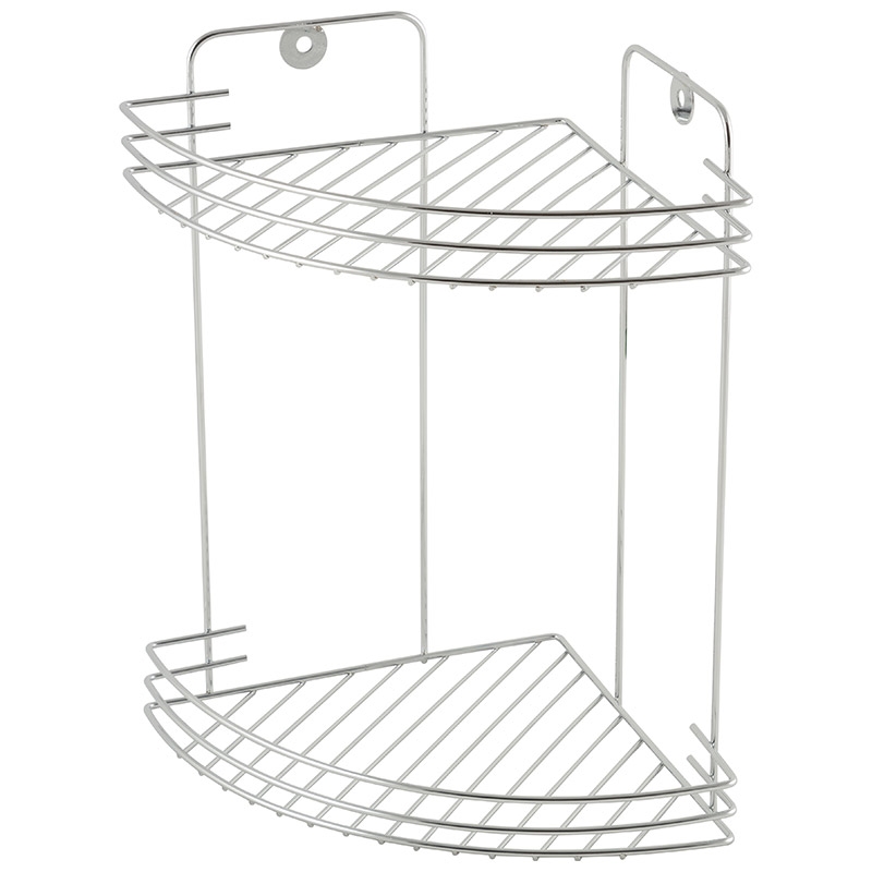 Полка угловая двухъярусная материал: хромированный металл размер:19*19*29 см максимальная нагрузка: 3кг крепление: шуруп (входит в комлект) Упаковка: п/э пакет и бирка (хэнгтэг) Полка угловая для ванной комнаты изготовлена из высококачественной хромированной стали, устойчивой к высокой влажности. Полка угловая отлично подойдет для хранения тюбиков гелей для душа, шампуней, мочалок и прочего.