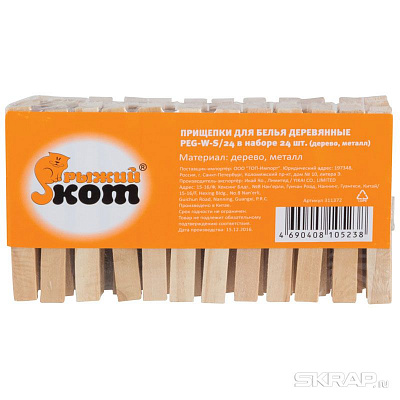 Прищепки для белья деревянные PEG-W-S/24 в наборе 24 шт.